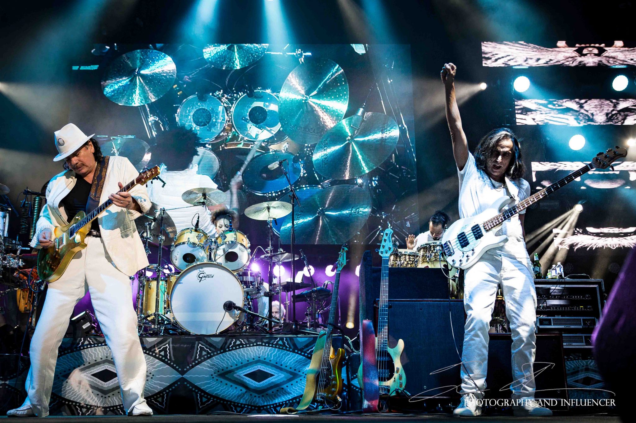 The entire show was simply electrifying from start to finish. Carlos played scores of solos that were accompanied by Latin beats, and fans danced with delight to each song. Throughout the evening the large screen on stage captured the band, the audience, and displayed footage of African dancers in dress and picturesque beaches and the sea.